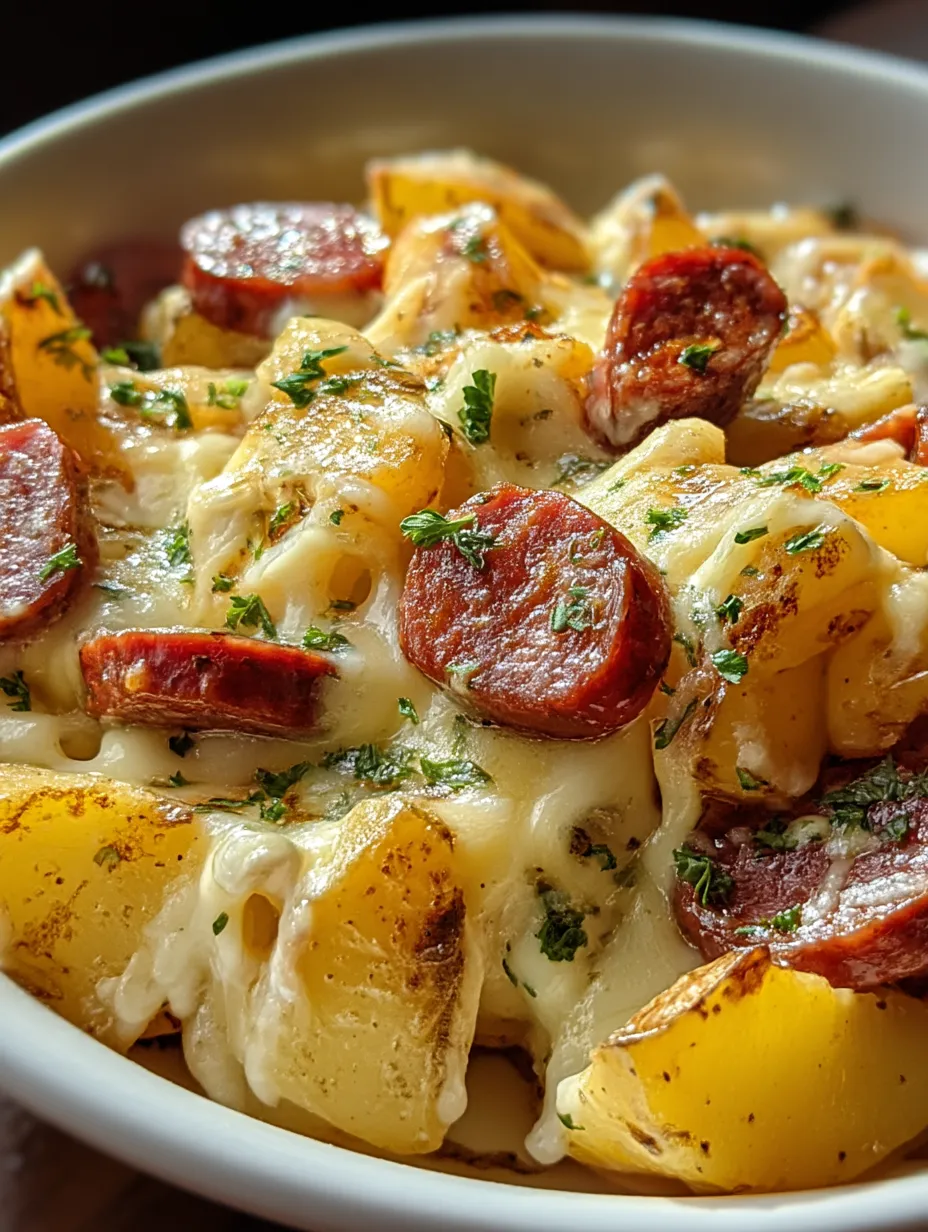 Cheesy potatoes and smoked sausage is a comfort food classic in many American kitchens It brings together simple farm staples like root vegetables cured meats and cheese This version makes it accessible for halal diets while keeping that old fashioned crowd pleasing soul